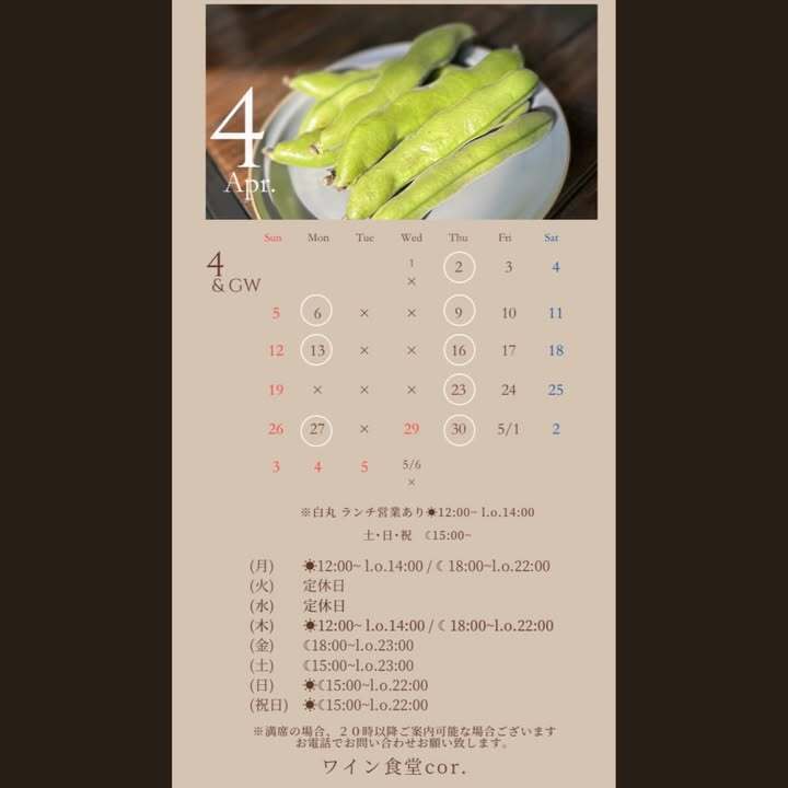 4/29(木)、5/3(日)〜5/5(火)は祝日のため