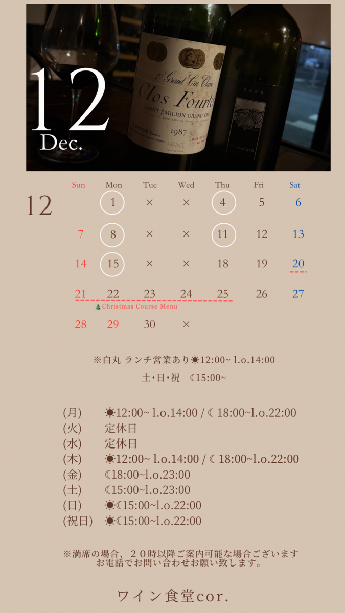 【午餐服務】 平日一般只在週一、週四營業,但會有不定期休息(因品酒洽談和採購)。請檢查營業日曆